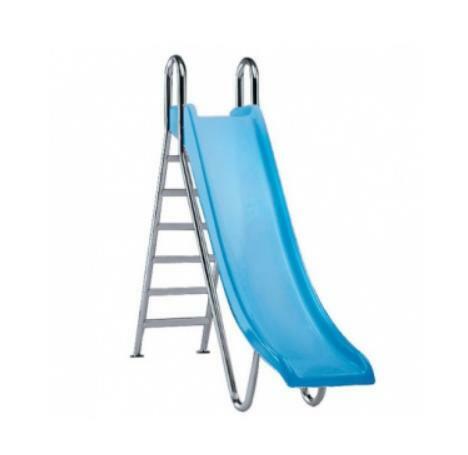 Горка AstralPool светло-синего цвета выполнена из полиэстера и стеклопластика. Ступеньки изготовлены из полипропилена и стеклопластика, поручни - из полированной нержавеющей стали.