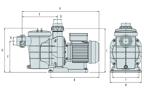 Корпус насоса изготовлен из полипропилена армированного стекловолокном и устойчив к химическим реагентам для дезинфекции бассейна. Крышка фильтра предварительной очистки изготовлена из прозрачного поликарбоната, закрывается с помощью резьбы. Вал изготовлен из нержавеющей стали AISI 316-L.