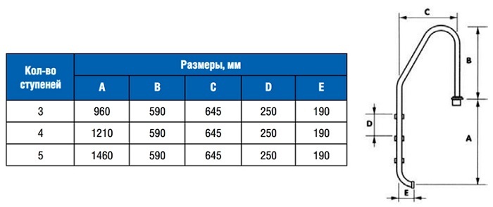 Изготовлены из нержавеющей стали марки AISI 316, которая позволяет устанавливать лестницу в бассейны с повышенной концентрацией соли в воде. Лестницы из стали марки AISI 304 укомплектованы классическими ступенями с рисунком, из марки AISI 316 - ступенями "Luxe" со съемными резиновыми накладками.